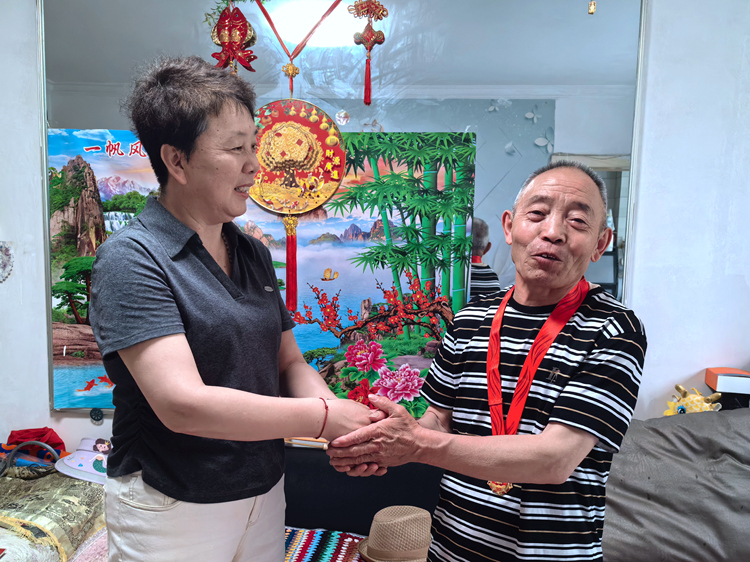 慰問(wèn)中,王東平鄭重地為兩位老黨員佩戴紀(jì)念章,與他們共同見證這一光榮時(shí)刻,代表公司黨委向他們表示祝賀,并與他們促膝交談。二一七地質(zhì)隊(duì)原黨委書記、隊(duì)長(zhǎng)熊忠緊緊握著紀(jì)念章,語(yǔ)重心長(zhǎng)地說(shuō):“這枚紀(jì)念章,不僅僅是一份榮譽(yù),更是一份沉甸甸的責(zé)任!作為一名黨員,要始終不忘初心、牢記使命,關(guān)注公司各項(xiàng)工作發(fā)展,為黨的地質(zhì)事業(yè)發(fā)揮余熱?!崩宵h員仝亮回憶起往昔歲月,激情滿懷,他用樸實(shí)的話語(yǔ),分享了自己投身地質(zhì)、扎根野外的難忘經(jīng)歷,表達(dá)了對(duì)地質(zhì)工作的無(wú)限忠誠(chéng)和熱愛,并感謝黨組織關(guān)懷和厚愛。王東平指出,老黨員是公司發(fā)展的親歷者和奠基人,以半生堅(jiān)守詮釋了“忠誠(chéng)”二字的厚重意義,這份榮譽(yù)實(shí)至名歸、當(dāng)之無(wú)愧。希望他們保重身體,持續(xù)關(guān)心和支持公司發(fā)展,積極建言獻(xiàn)策。