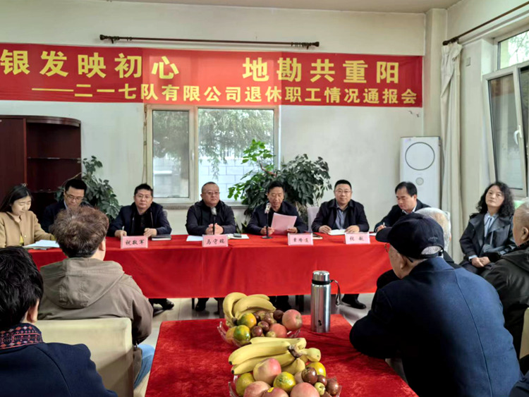 為弘揚(yáng)地質(zhì)“三光榮”精神,突出地質(zhì)情懷與組織關(guān)懷,10月29日,公司在退休職工活動(dòng)室召開了“銀發(fā)映初心 地勘共重陽”退休職工情況通報(bào)會(huì)。公司黨委書記、董事長馬守瑞出席會(huì)議并講話,紀(jì)委書記覃隆連主持會(huì)議,副總經(jīng)理祝敬軍、張?jiān)絽?huì)。