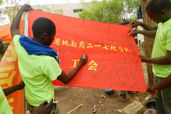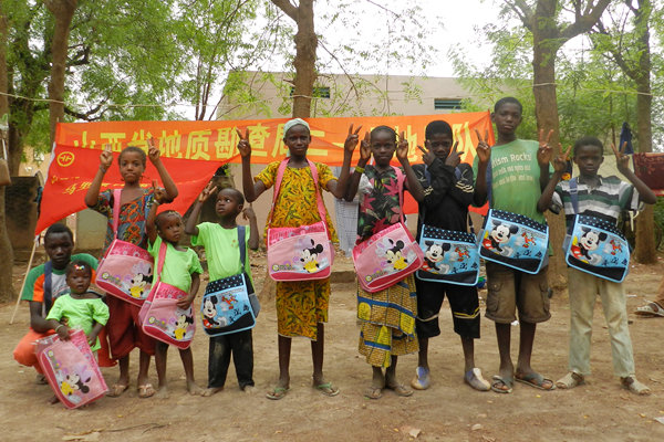在馬里項(xiàng)目組第四次踏上非洲之際,217隊(duì)工會(huì)精心準(zhǔn)備了成人、兒童T恤,兒童書包、畫筆及圖畫本等禮品。項(xiàng)目組從09年開始在該村駐扎,在工作上得到當(dāng)?shù)鼐用翊罅χС郑谏钌吓c村民和諧相處,并結(jié)下了深厚的兄弟般友誼,受到當(dāng)?shù)厝藲g迎。