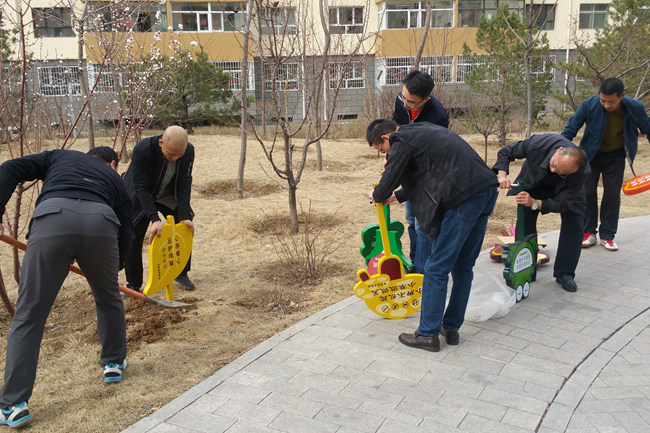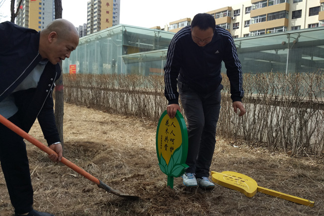 綠草茵茵,鳥語蜂吟。天氣回暖,萬象復(fù)蘇,正是戶外作業(yè)的好時光!清明剛過,物業(yè)中心置辦了五彩繽紛、內(nèi)容豐富的花草標(biāo)識牌。大家扛著鐵鍬,劃分板塊,藉著春風(fēng),打響了“花草保衛(wèi)第一戰(zhàn)”。
